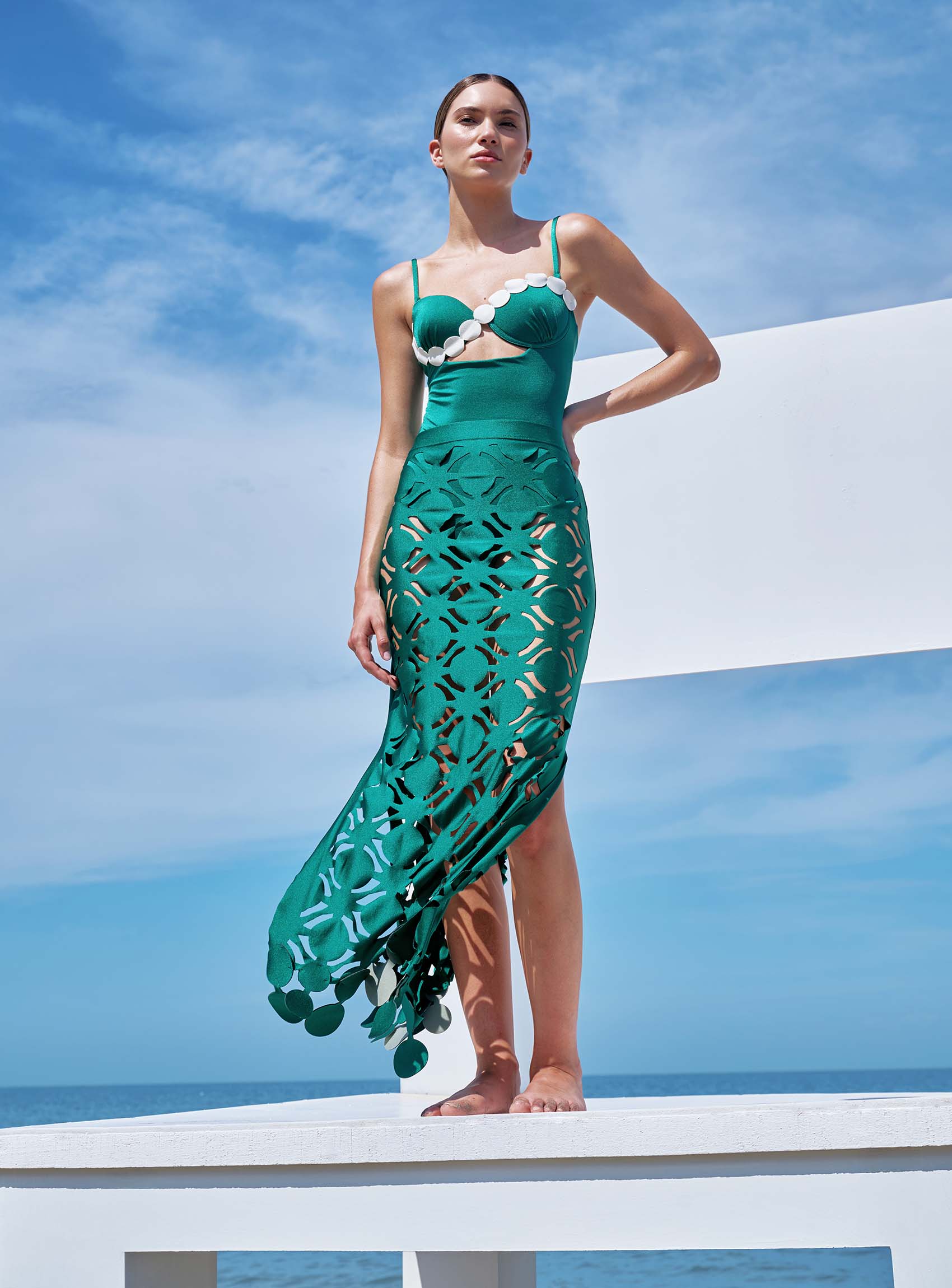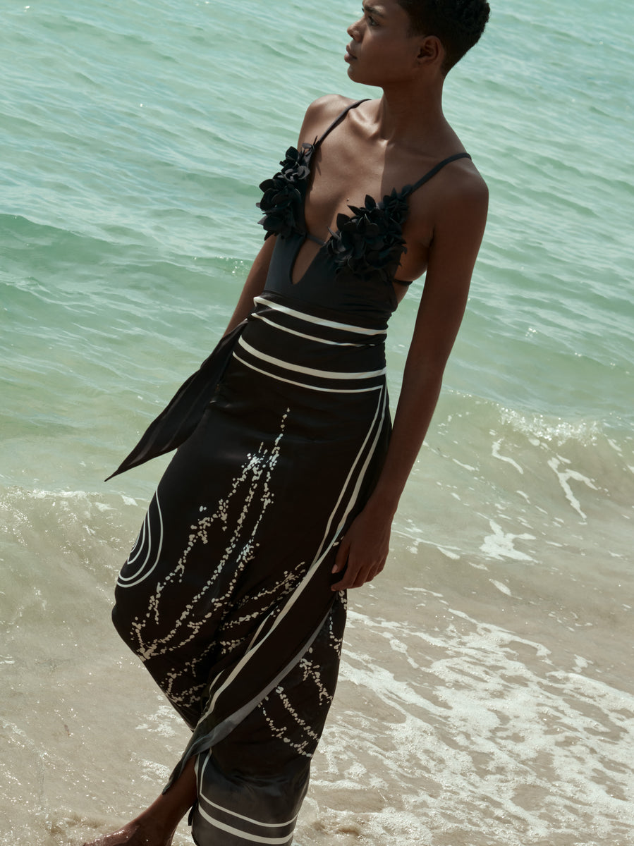From silence, rythm is born. From wáter, fire in La Solea, she no longer floats - she burns. She dances with the sun, wears color like sacred armor. Her energy, a ritual. Here, beauty is strength. Light doesn't follow her - it announces her. La Solea is not a destination. It is her.