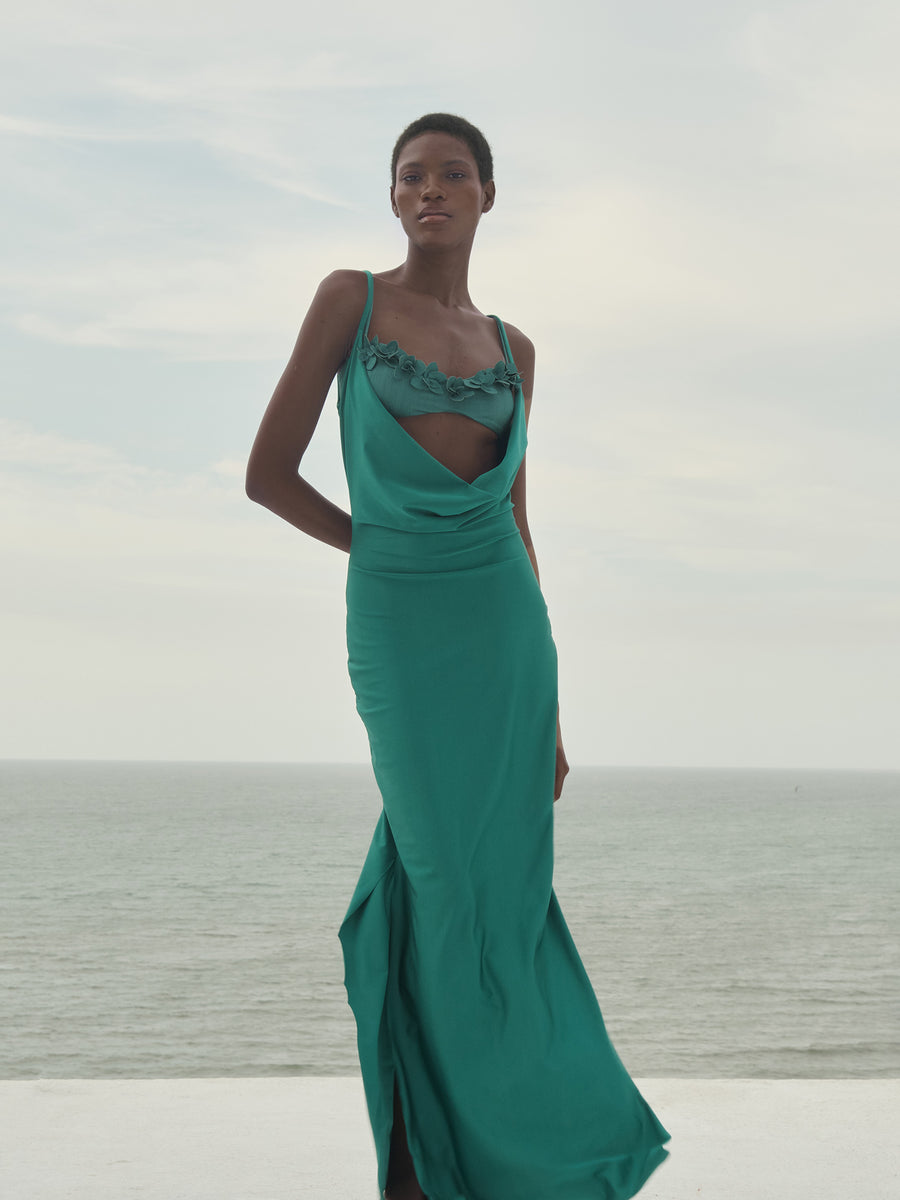 From silence, rythm is born. From wáter, fire in La Solea, she no longer floats - she burns. She dances with the sun, wears color like sacred armor. Her energy, a ritual. Here, beauty is strength. Light doesn't follow her - it announces her. La Solea is not a destination. It is her.