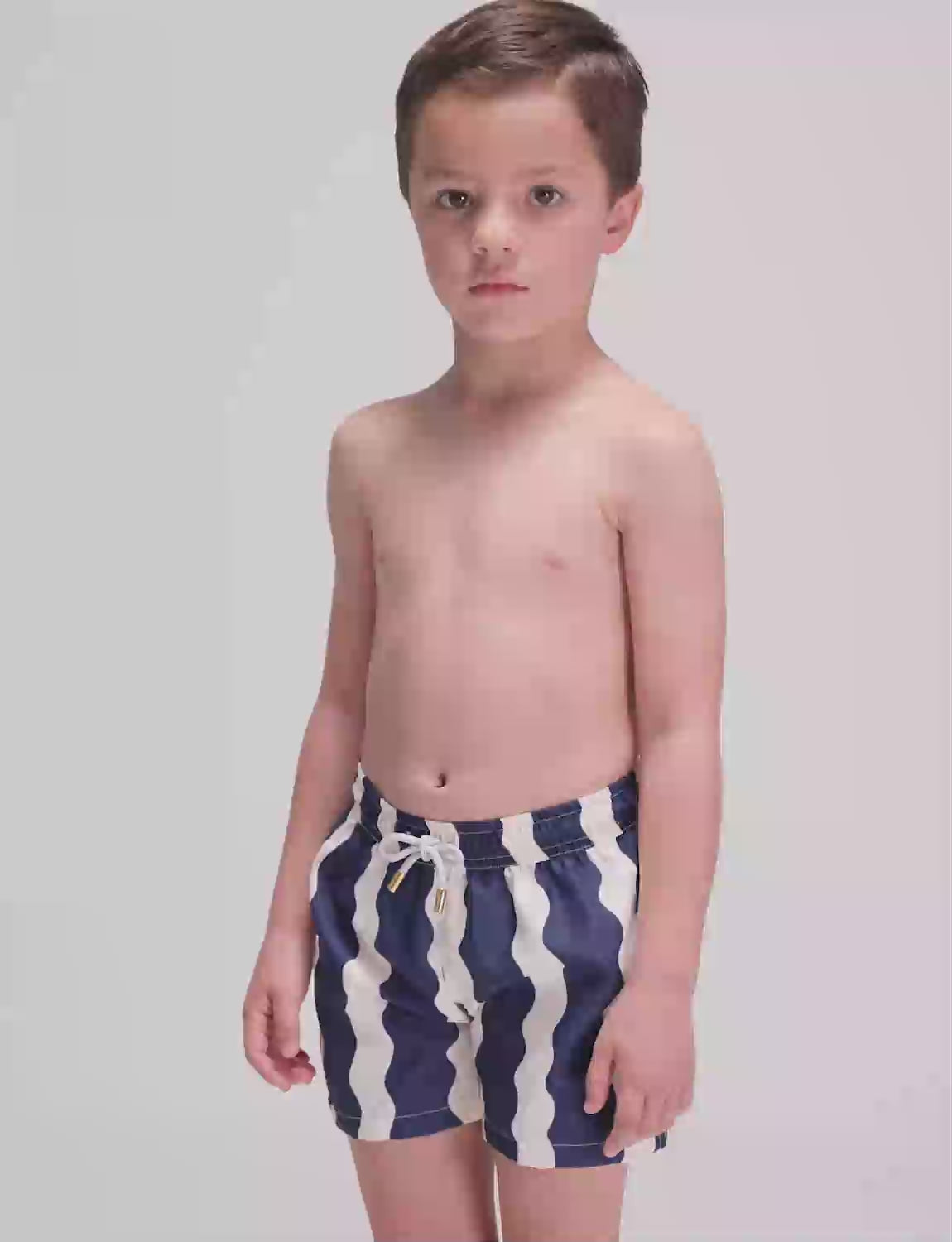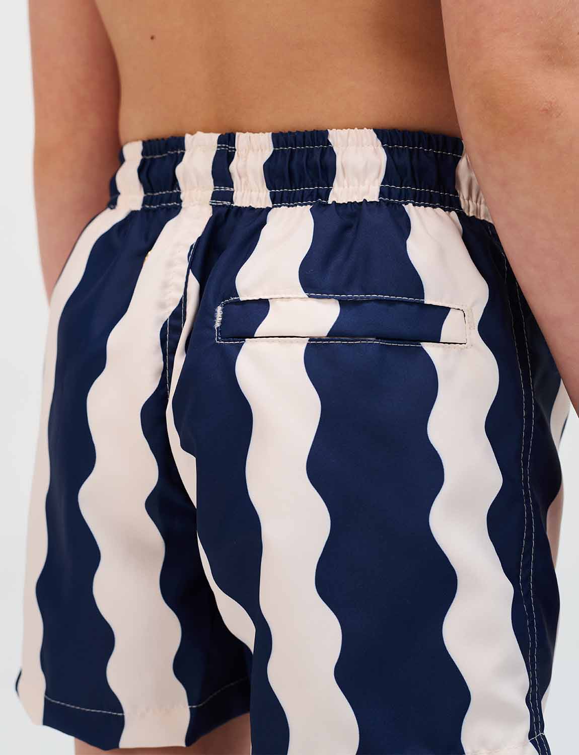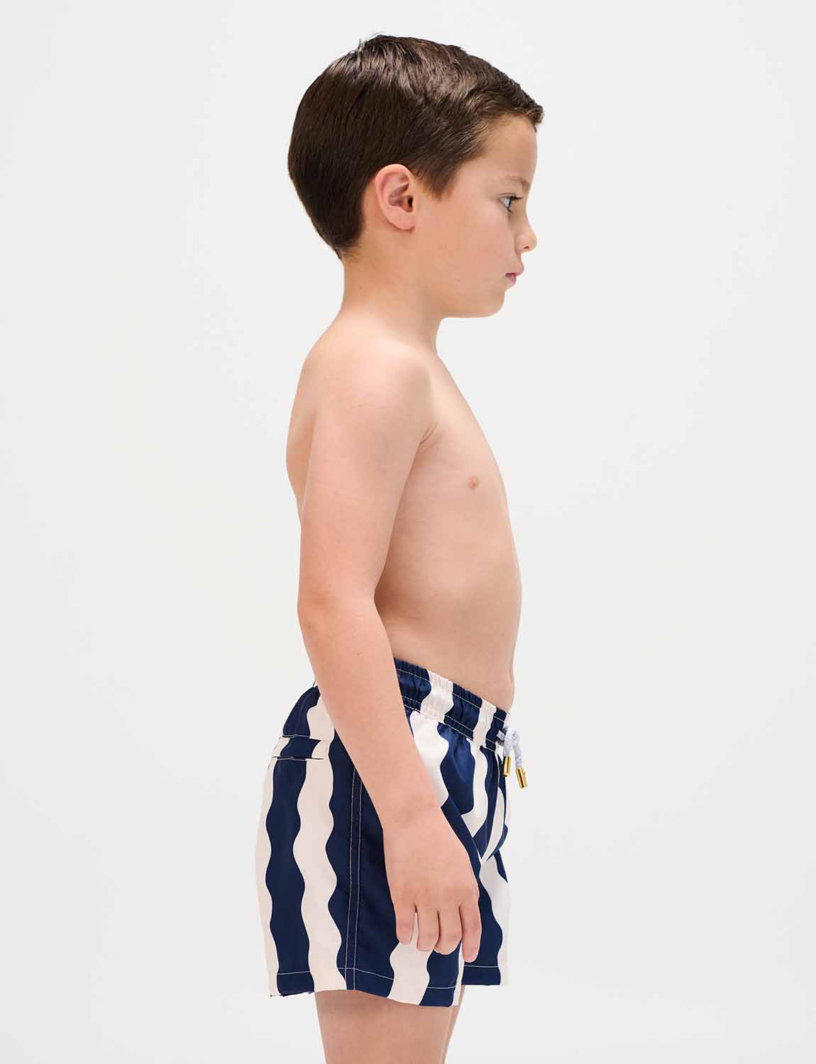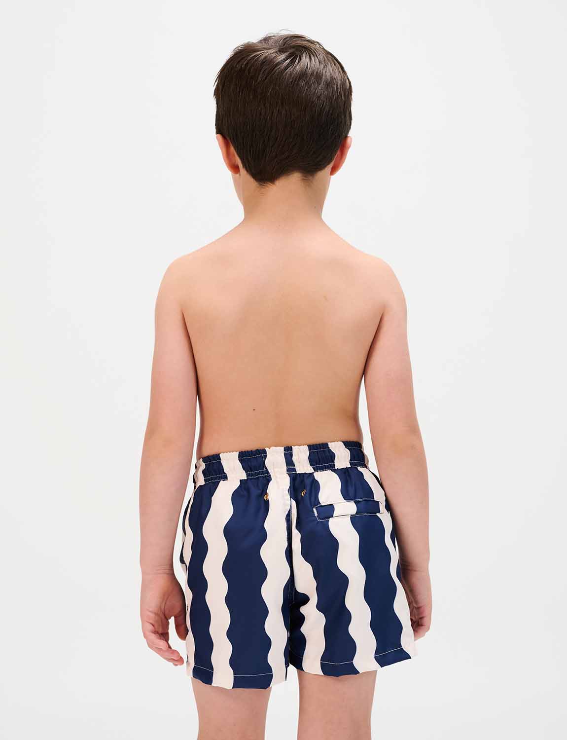 Boys’ swim trunks with exclusive ANCORA print, elastic waistband with adjustable drawstring and inner mesh lining.
