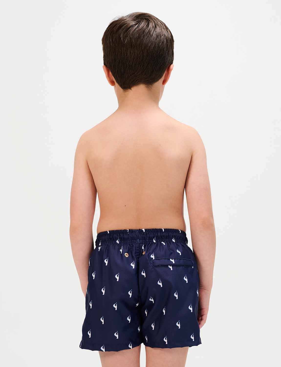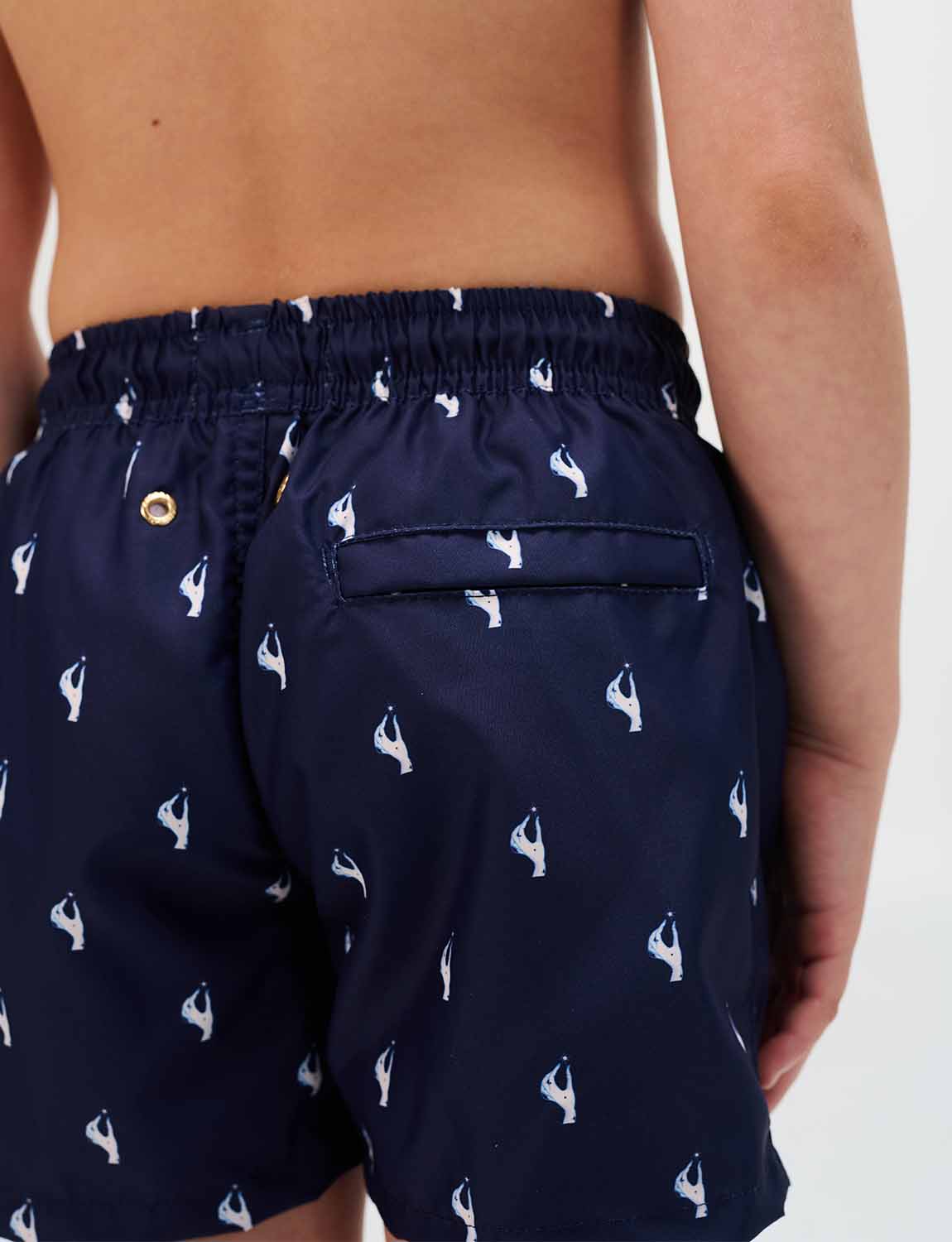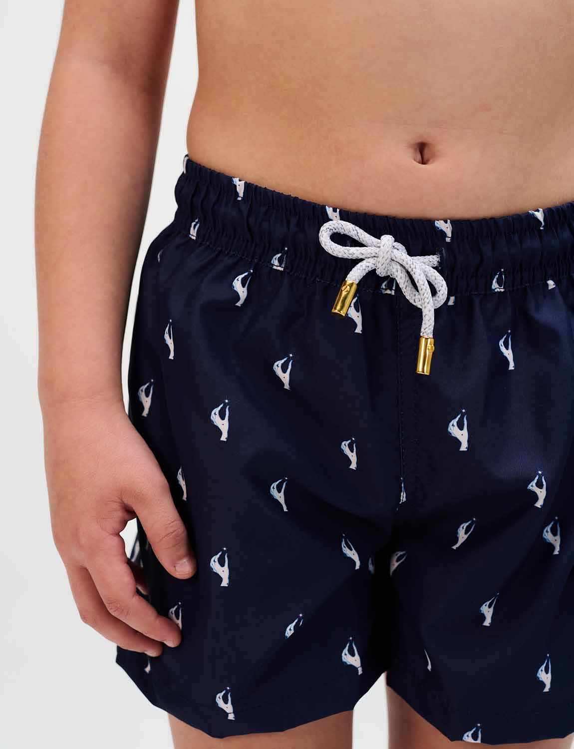 Boys’ swim trunks with exclusive ANCORA print, elastic waistband with adjustable drawstring and inner mesh lining.