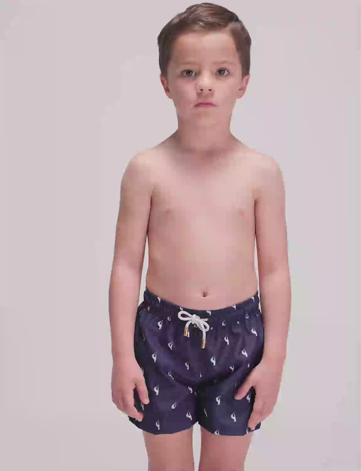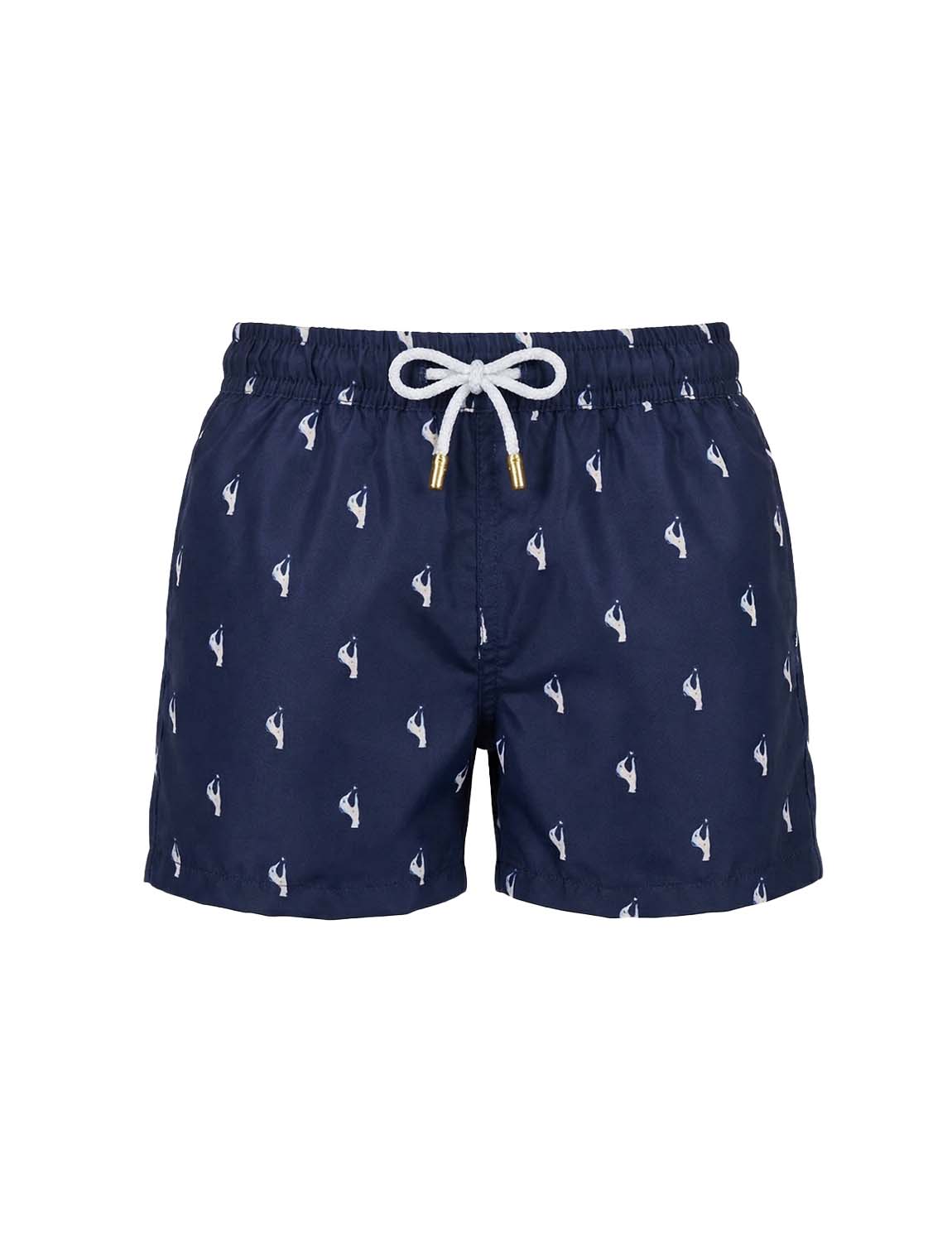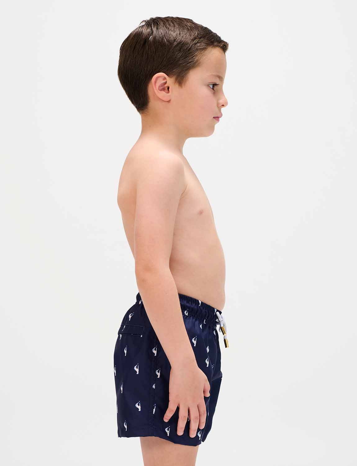 Boys’ swim trunks with exclusive ANCORA print, elastic waistband with adjustable drawstring and inner mesh lining.